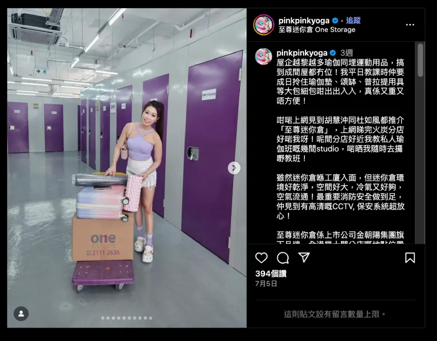 咁啱上网见到胡慧冲同杜如风都推介「至尊迷你仓」,上网睇完火炭分店好啱我呀!呢间分店好近我教私人瑜伽班嘅几间studio,啱晒我随时去攞嘢教班!